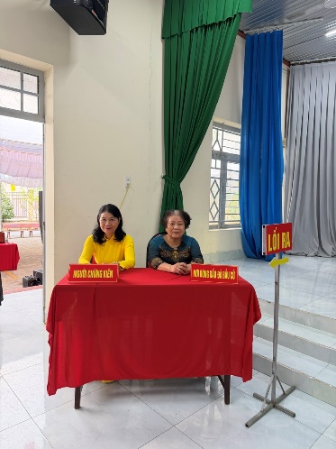 (Cổng ra - vào và khu vực bên ngoài phòng bỏ phiếu được trang trí theo Mẫu số 01).