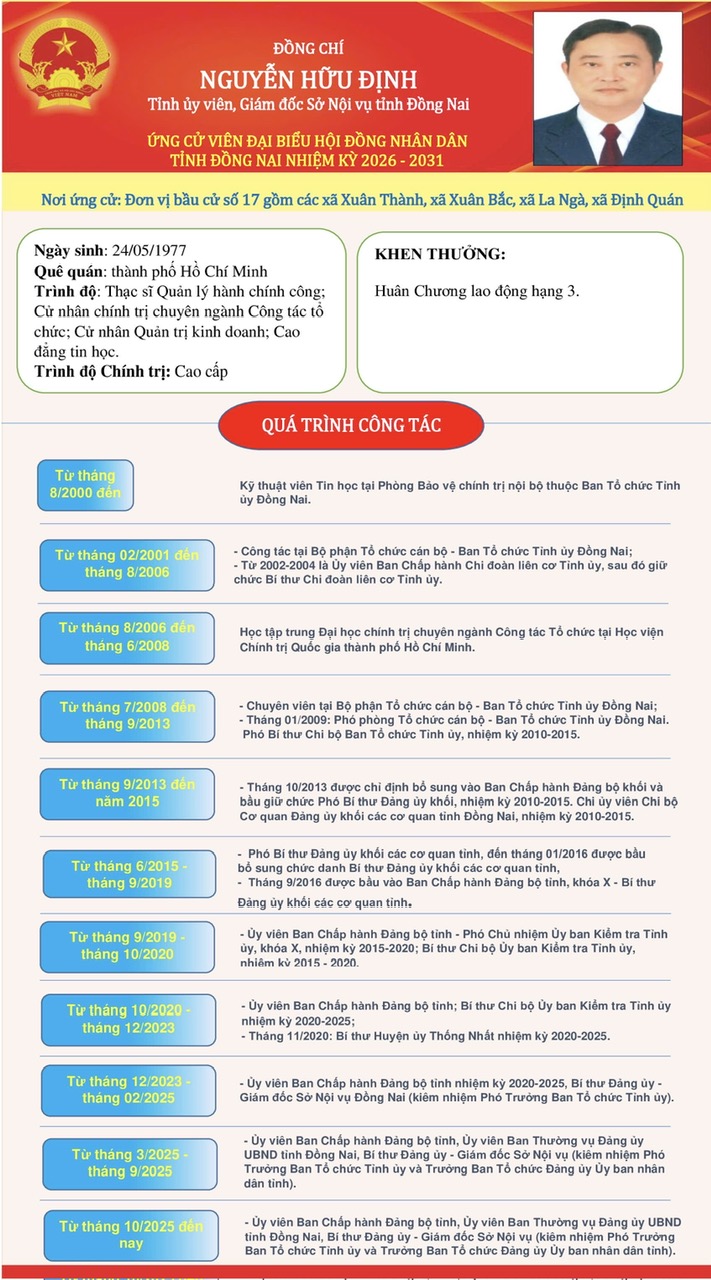 ỨNG CỬ VIÊN HỘI ĐỒNG NHÂN DÂN TỈNH ĐỒNG NAI NHIỆM KỲ 2026 - 2031