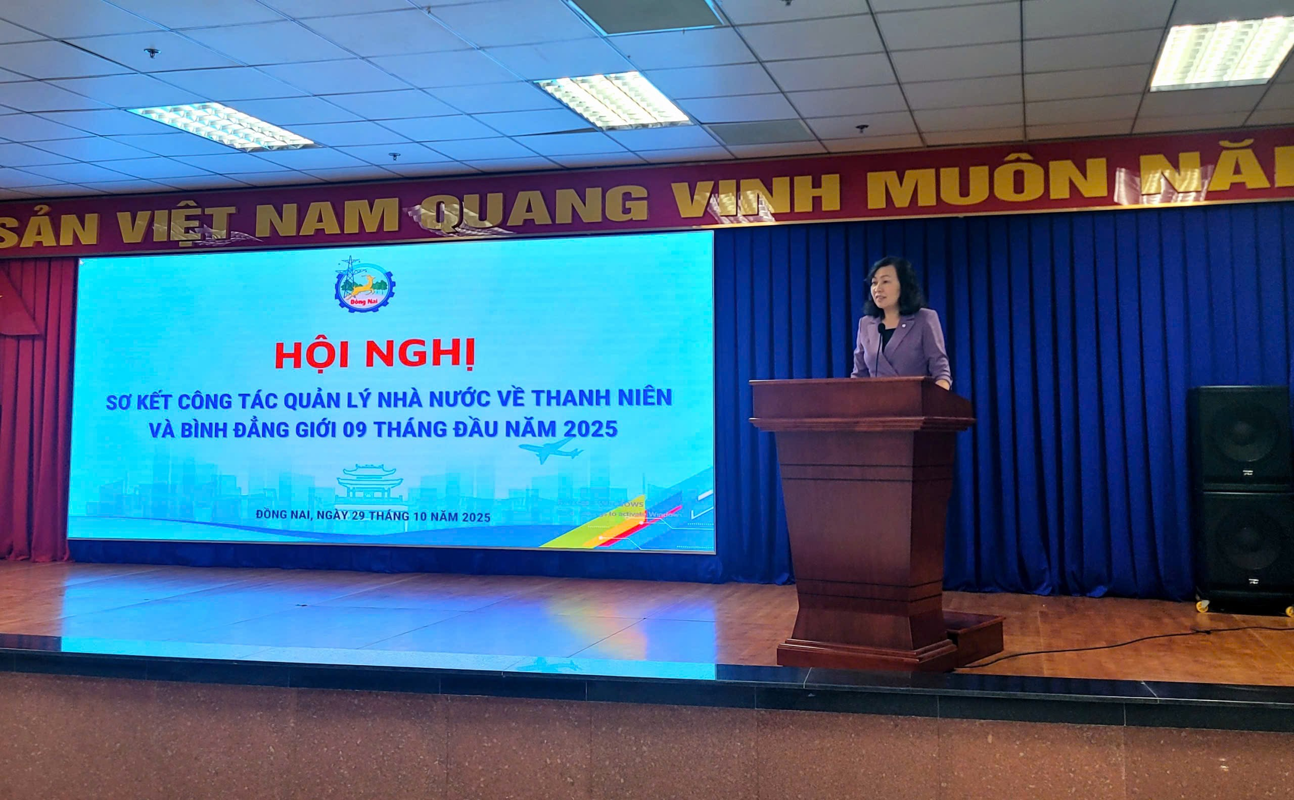 Hội nghị đánh giá thực trạng và kết quả triển khai thực hiện kế hoạch trong công tác quản lý nhà nước về thanh niên và bình đẳng giới trong 09 tháng đầu năm 2025 đã đạt nhiều kết quả tích cực, toàn tỉnh Đồng Nai có 977.207 thanh niên trong độ tuổi từ 16 đến 30, tỷ lệ dân số là thanh niên so với tổng dân số là 22,07%; 99% dân số toàn tỉnh đã được tiếp cận thông tin, kiến thức cơ bản về bình đẳng giới thông qua nhiều hình thức và đa phương tiện truyền thông. Nhiều mô hình thanh niên khởi nghiệp, chuyển đổi số, tình nguyện vì cộng đồng đã góp phần lan tỏa tinh thần “đâu cần thanh niên có, việc gì khó có thanh niên”. Vai trò của phụ nữ trong lãnh đạo, quản lý được khẳng định ngày càng rõ, tỷ lệ nữ tham gia lãnh đạo tiếp tục được duy trì: Cấp tỉnh nhiệm kỳ 2026 - 2030, có 22/68 nữ tham gia Ban Chấp hành Đảng bộ tỉnh đạt tỷ lệ 32,35%; 4/15 nữ tham gia Ban Thường vụ Tỉnh ủy đạt 26,26% và 19,04% nữ giữ vị trí lãnh đạo sở, ngành; 54,73% xã, phường có nữ cán bộ chủ chốt.