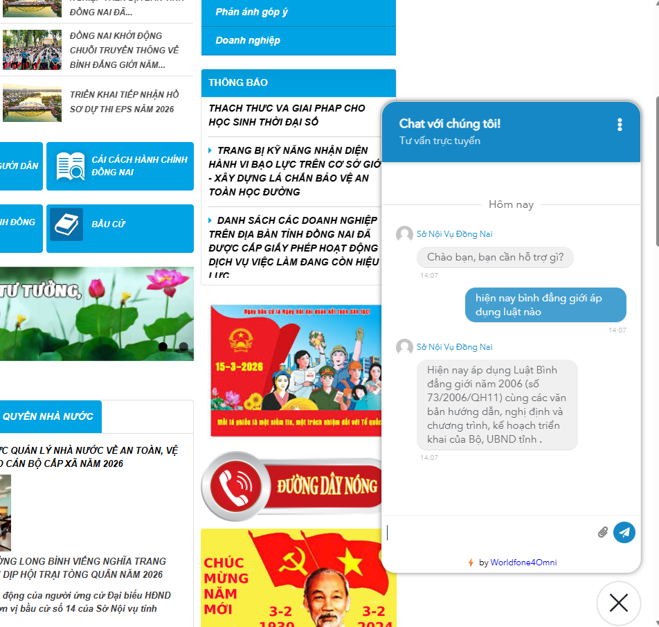 Đổi mới công tác truyền thông với chủ đề “Truyền thông số”: Năm 2026, Sở tập trung phổ biến chính sách pháp luật về bình đẳng giới qua các nền tảng số như màn hình Led, Zalo OA, Fanpage và trang Web của Sở. Đối tượng tuyên truyền được mở rộng đến học sinh, sinh viên, công nhân tại các khu công nghiệp và đồng bào dân tộc thiểu số. Đặc biệt, Sở sẽ nghiên cứu áp dụng các mô hình trợ lý ảo (chatbot) để tư vấn pháp luật tự động.