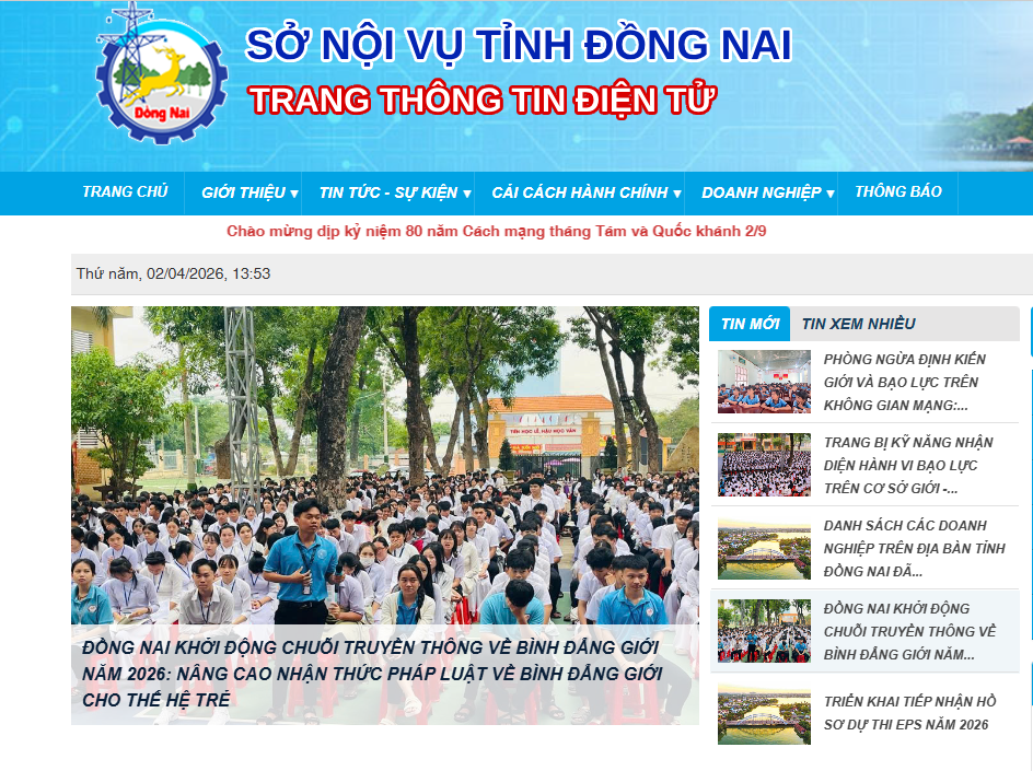 Trang Web Sở Nội vụ tỉnh Đồng Nai: https://snv.dongnai.gov.vn