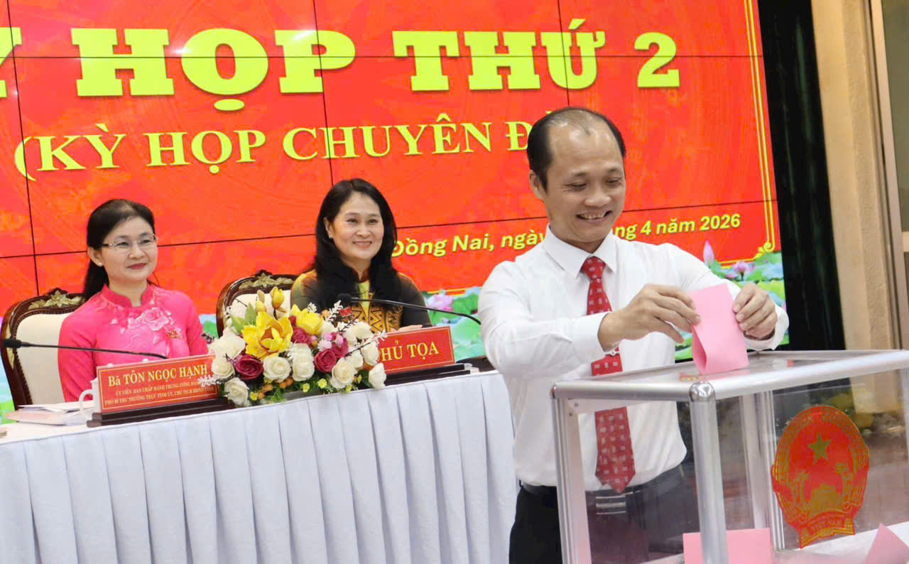 <p style="text-align:justify;"><span style="background-color:white;color:black;">Ngày 10/4/2026,&nbsp;t</span>ại Kỳ họp thứ 2 (kỳ họp chuyên đề) HĐND tỉnh khóa XI, nhiệm kỳ 2026 - 2031, <span style="background-color:white;color:black;">đại biểu HĐND tỉnh đã bỏ phiếu bầu&nbsp;</span>đồng chí Nguyễn Tuấn Anh, Ủy viên Ban Thường vụ Tỉnh ủy, Giám đốc Sở Nông nghiệp và Môi trường, giữ chức vụ Phó Chủ tịch UBND tỉnh Đồng Nai với 76/76/85 phiếu đồng ý, đạt tỷ lệ 100% so với tổng số đại biểu dự họp.</p>