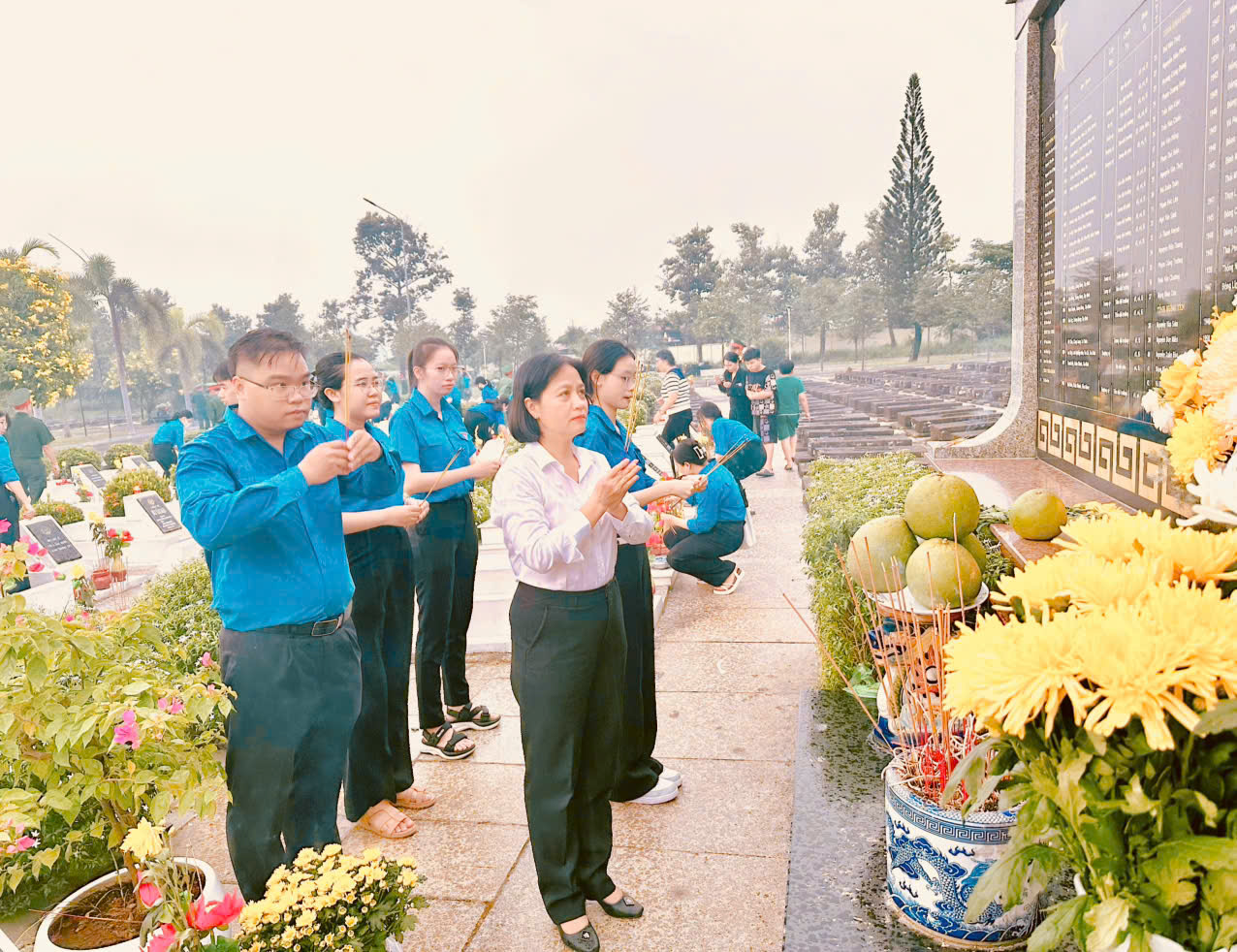 Hình Chi đoàn Sở Nội vụ chụp ảnh lưu niệm tại Nghĩa trang