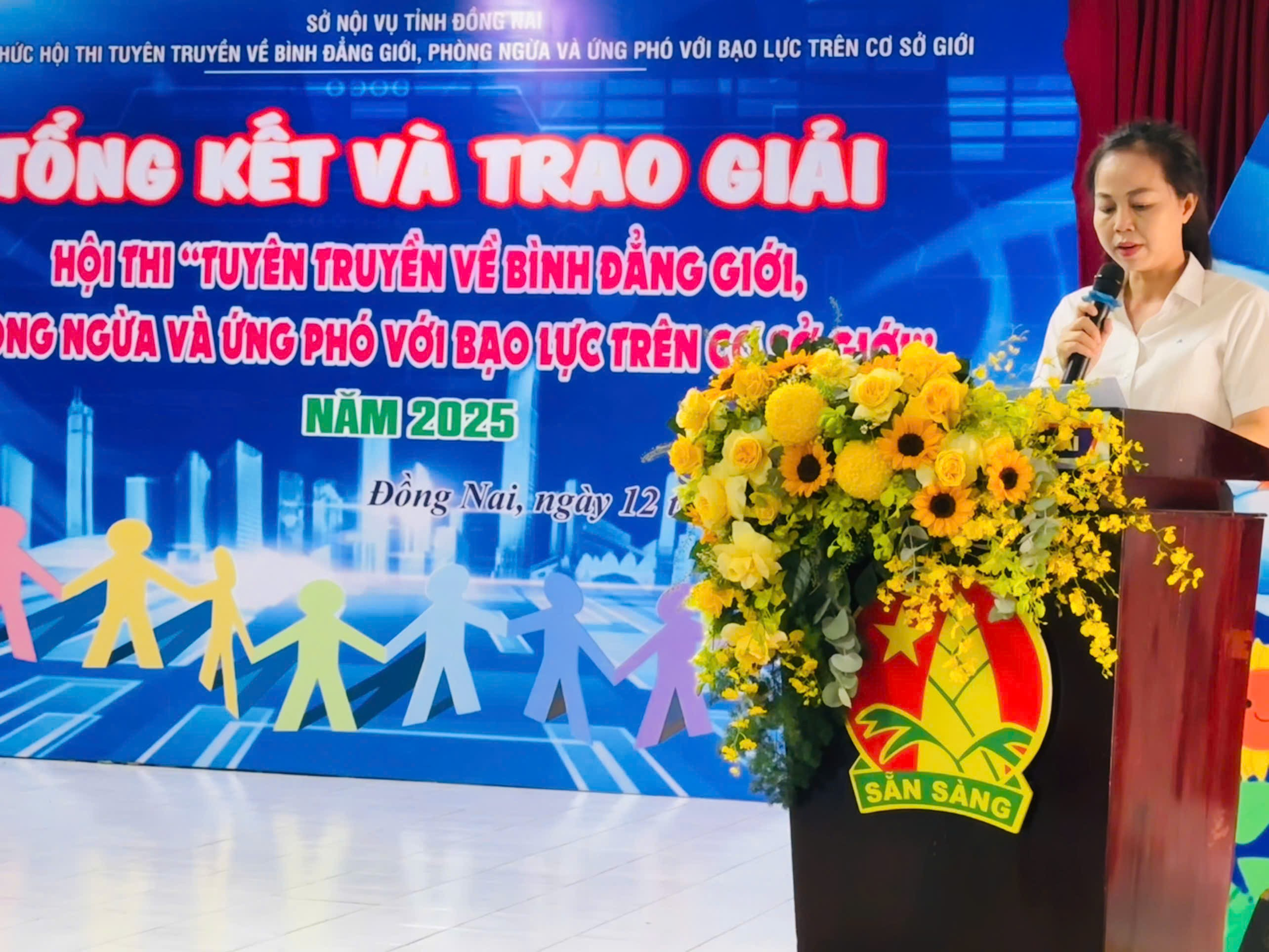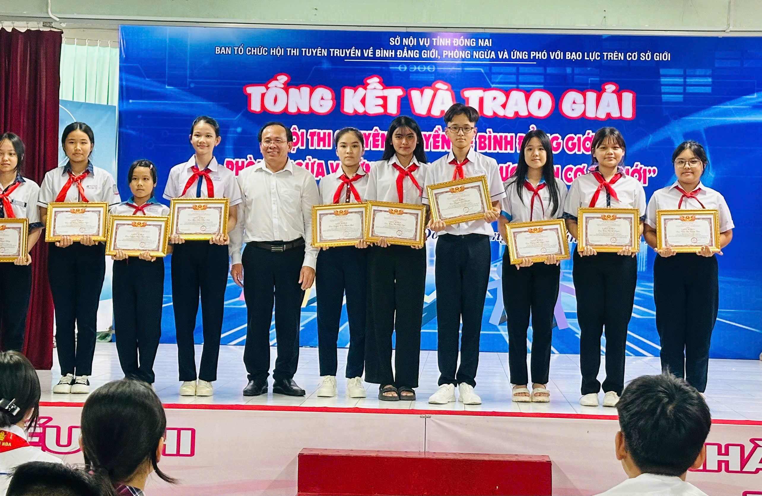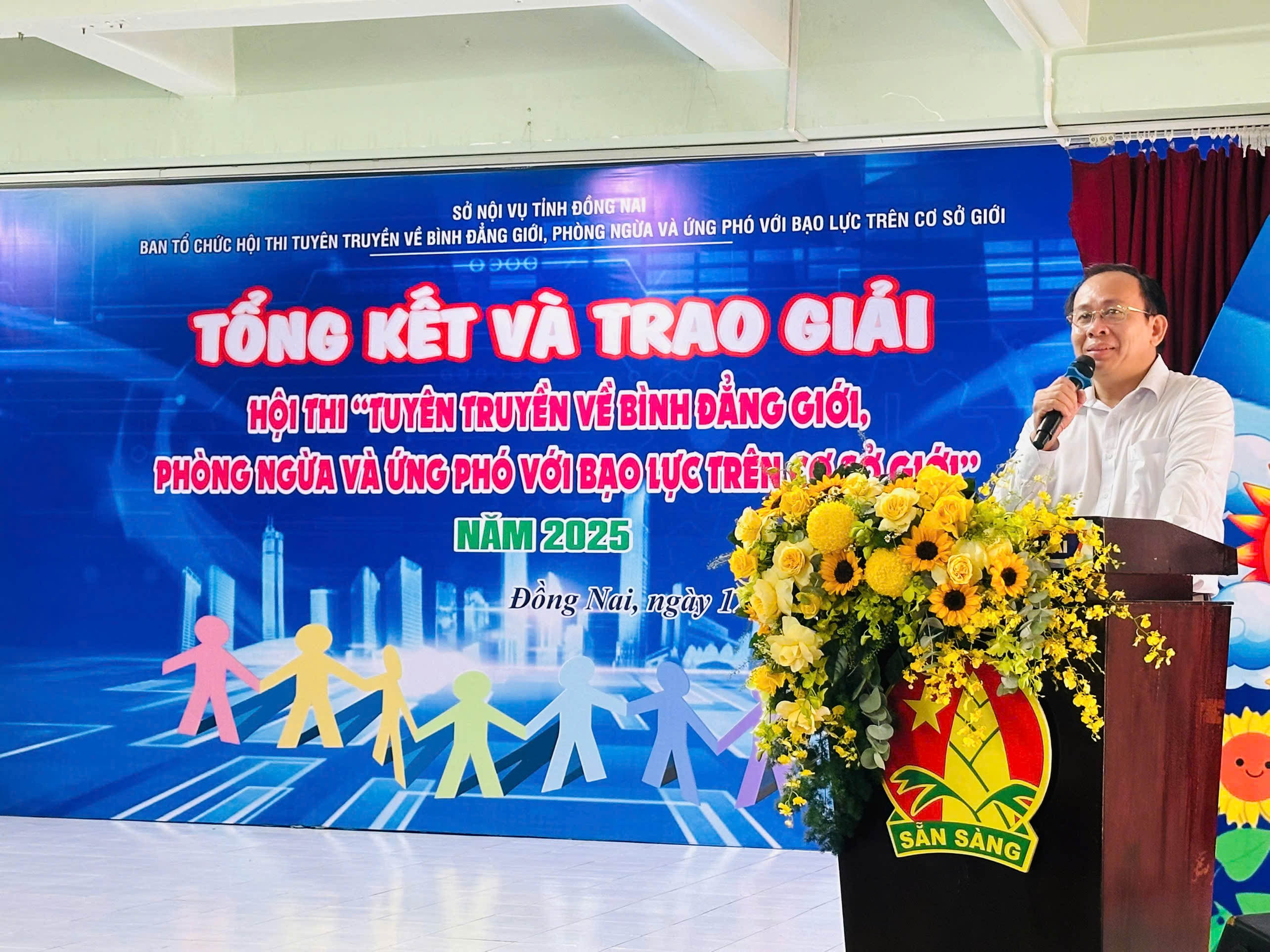 Thực hiện kế hoạch số 010/KH-SNV ngày 01/8/2025 của Sở Nội vụ về việc tổ chức Hội thi “Tuyên truyền về bình đẳng giới, phòng ngừa và ứng phó với bạo lực trên cơ sở giới” năm 2025. Sáng ngày 12/10/2025, tại Nhà Thiếu nhi tỉnh Đồng Nai, đã diễn ra buổi Tổng kết và Trao giải cho 72 thí sinh xuất sắc nhất trong số 3.771 thí sinh tham dự 03 phần thi của Hội thi “Tuyên truyền về bình đẳng giới, phòng ngừa và ứng phó với bạo lực trên cơ sở giới” năm 2025 (Hội thi). Hội thi do Sở Nội vụ chủ trì phối hợp với các sở, ngành liên quan và Nhà Thiếu tỉnh tổ chức đã chính thức khép lại với những thành công rực rỡ, thu hút sự tham gia đông đảo của các em học sinh trên toàn tỉnh. Hội thi không chỉ tạo ra một sân chơi giáo dục ý nghĩa mà còn góp phần lan tỏa mạnh mẽ các thông điệp về bình đẳng giới và phòng chống bạo lực trong cộng đồng.
