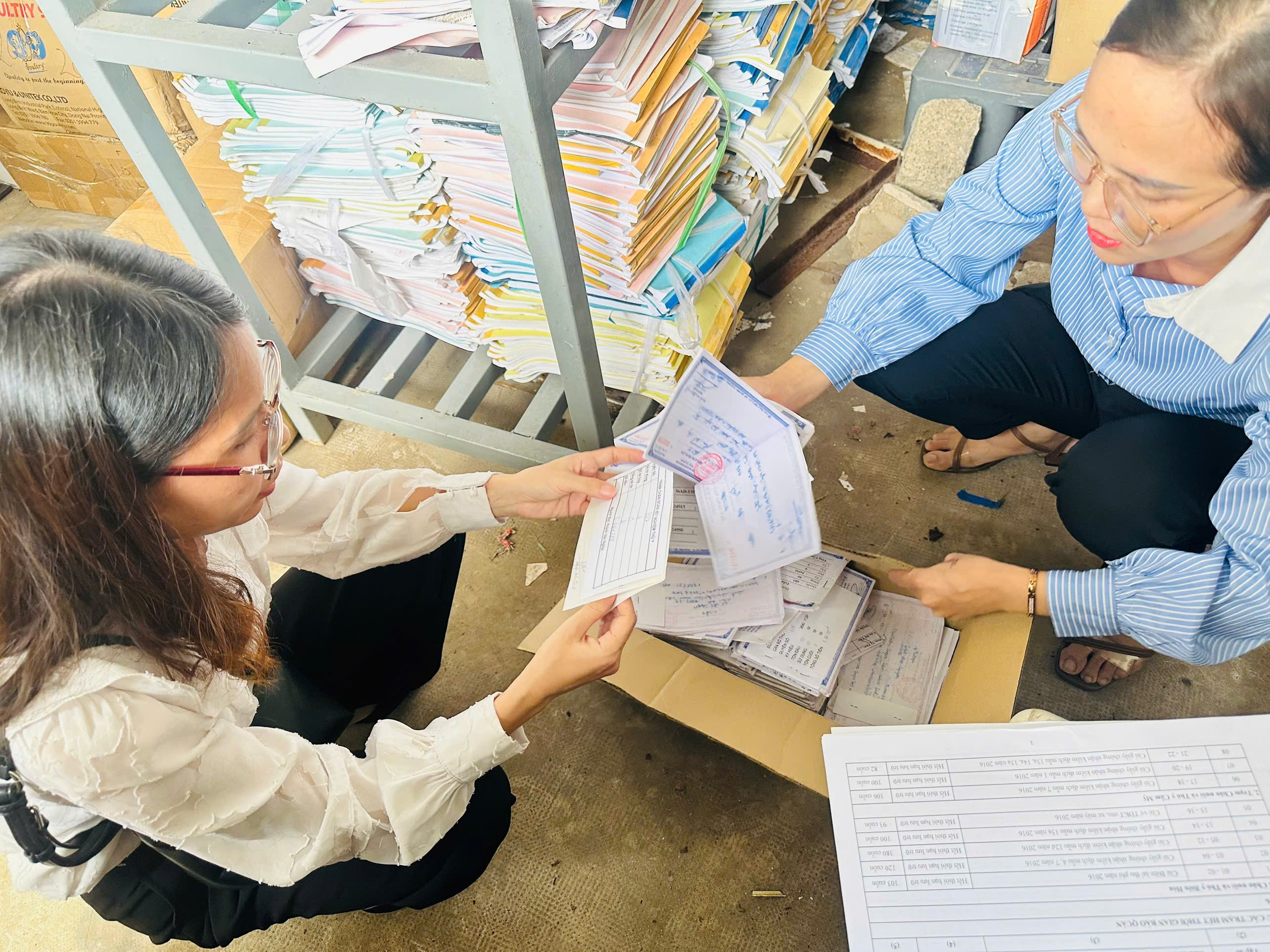 ( Hình ảnh kiểm tra thực tế cùi biên lai, liên lưu biên lai… tại Kho Lưu trữ của đơn vị)